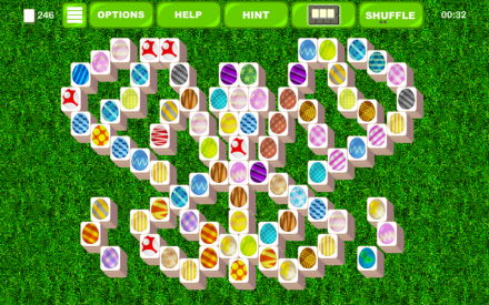 The tiles contain colorful Easter Egg themed art, and there’s even additional set to chose from. Beat over 50 levels and try to best your playing time.