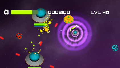 Space game with loud noises and eye-popping special-effects. I don't think you can beat all 50 levels.