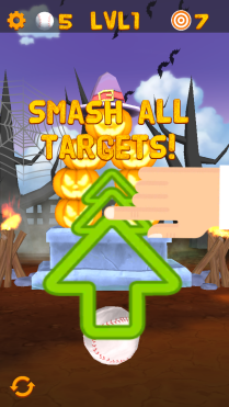 Swipe a baseball to aim and smash the pumpkins! Destroy all the pumpkins to win!