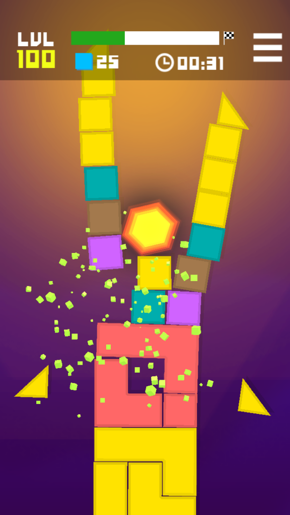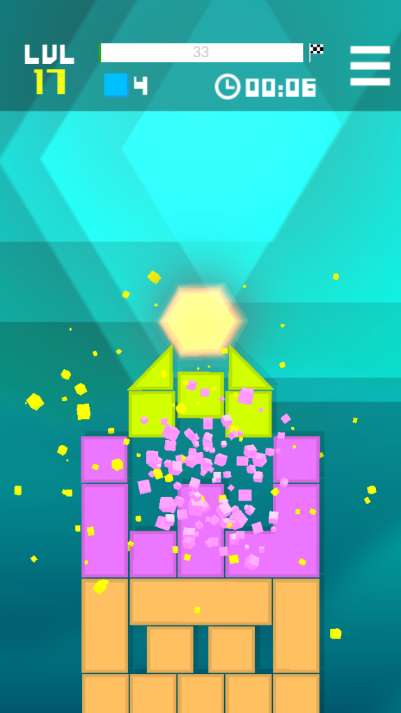 • Cool sounds and special effects (the hexagon glows, blocks explodes with particle effects).