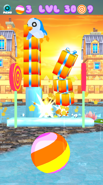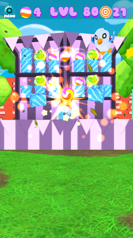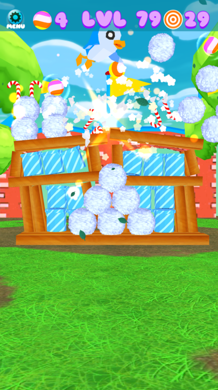 Avoid knocking the cute critters that roam around and enjoy special effects that include fun physics engine, rain and snows. There are 80 levels to play that spans across four colorful, bright and cute holiday themed environments.