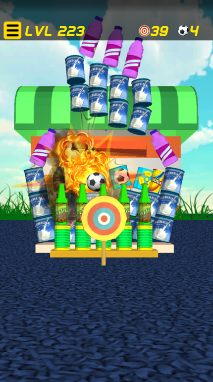Some levels have special targets such as exploding cans and “bonus lives” cans that will give extra balls, and animated platform. The exploding cans can be used to your advantage because they can knockdown other objects around them, which usually means it will be easier to win the game.